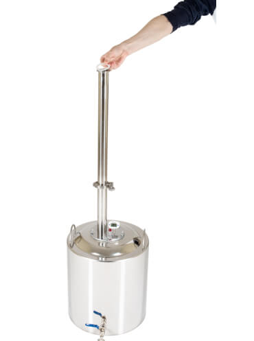 Широкие соединительные трубки диаметром 18 мм и спускной клапан гарантируют полную безопасность при перегонке. Закупорка исключена.