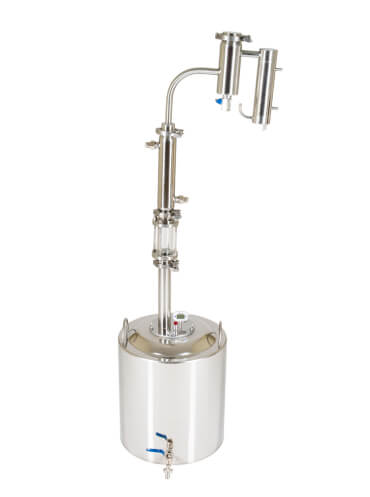Заключительный этап очистки — сухопарник с краном для слива. На его стенках происходят повторная конденсация и переиспарения спирта. Одновременно с эффективной очисткой происходит и ароматизация напитка. (Попробуйте добавить в сухопарник цедру лимона или ароматные травы).